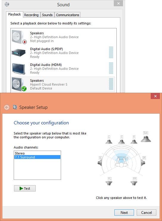 Дело в том, что данная модель не требует драйверов при работе с операционными системами семейств Windows и Mac OS. Если быть точнее, она просто использует предусмотренные штатные версии для стандартных звуковых устройств с этим интерфейсом. Проверили это мы с Windows 7, 8.1 и 10, а также OS X 10.9.5. Для включения режима 7.1 нужно изменить конфигурацию динамиков в параметрах устройства.