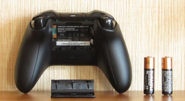 Если сравнивать с контроллером для Xbox 360, то контроллер для Xbox One стал чуть меньше, рукоятки укоротились, отсек с батарейками переехал в переднюю часть корпуса, из-за чего центр тяжести сместился вперед. Батарейки в отсеке лежат неплотно. Если потрясти, слышно дребезжание.