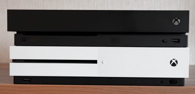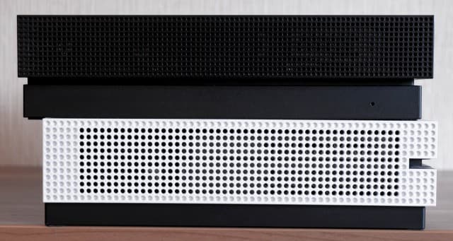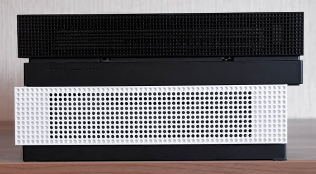 Левая грань: Xbox One X сверху, Xbox One S снизу